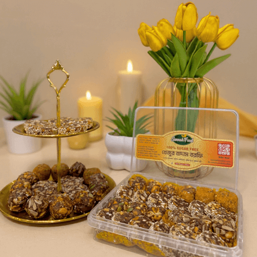 100% চিনিমুক্ত উচ্চ পুষ্টিগুণ সম্পন্ন খেজুর বাদাম বরফি